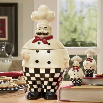 Vintage cat chef cookie jar, kitchen decor, cat and mouse manddtreasuresstore $ 84.95 free shipping favorite add to chef thank you gift teddy bear shaniztoons $ 18.05. 4.5 out of 5 stars. Kiss the chef collectible kitchen set: 5 out of 5 stars. Place a fat chef cookie jar on the counter and wait for the smiles! # chef themed kitchen decor from j.mark# you'll love our chef theme kitchen decor.ceramic cookie jars, canisters, and more, in your kitchen and for fabulous gifts. From chubby chefs, to gourmet cooks, to garcons, these little men are sure to help you prepare your perfect. Rated 5 out of 5 by jeanna from fat chef man kitchen stuff i love my cookie jar i love the chef man kitchen stuff date published: 5 out of 5 stars (381). 4.8 out of 5 stars 153. Vintage lil chef kitchen decor ~ red plastic cooking utensil ~ retro children's lemon lime cutter slicer reamer juicer by retroamyo on etsy. This cookie jar perfect for your cookies, coffee, flour, or your pet's favorite treats. Great for storing dry goods, snacks, and baking supplies within arms reach right on your kitchens counter our wide collection of kitchen canisters and cookie jars are sure to go with any kitchen decor.